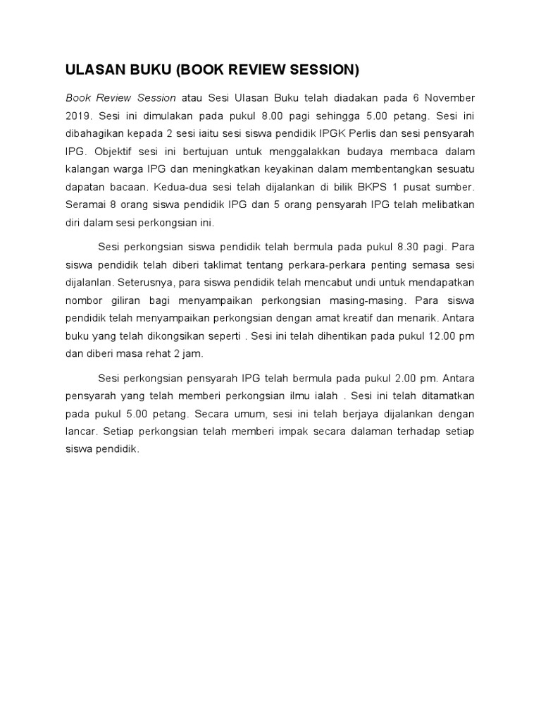 Contoh Teks Ulasan Buku. Written by Alexandra Mar 14 2021 9 min read. Ini contoh tajuk pengucapan awam ikut isu semasa yang ringkas.